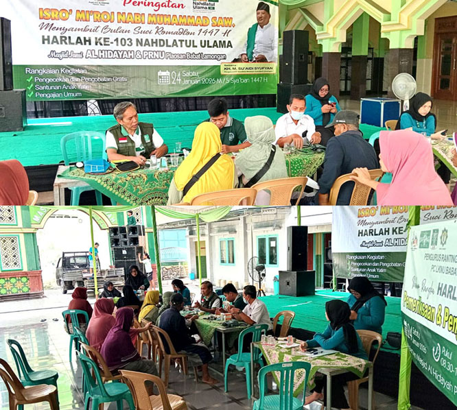 Plaosan, Babat (24/01/2026)— Dalam rangka memperingati Isro’ Mi’roj Nabi Muhammad SAW sekaligus Hari Lahir (Harlah) Ke-103 Nahdlatul Ulama, Takmir Masjid Jami’ Al Hidayah bersama Pengurus Ranting NU Plaosan menyelenggarakan kegiatan keagamaan dan sosial pada Sabtu, 24 Januari 2026, bertempat di Masjid Jami’ Al Hidayah Plaosan, Babat.